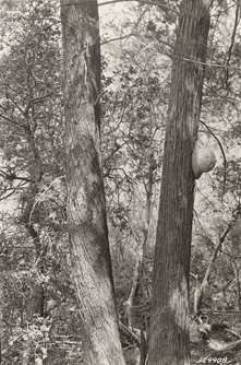 Cupressus sargentii. Interior of stand showing bark detail of trees.